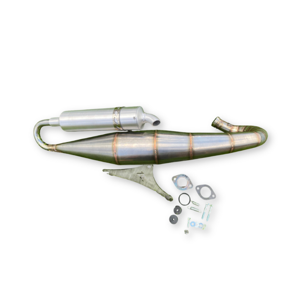 De HT Race Uitlaat voor Piaggio en Gilera 125-180cc 2 Takt motoren is de ultieme keuze voor rijders die hun prestaties naar een hoger niveau willen tillen. Deze handgemaakte uitlaat, vervaardigd uit roestvrij staal, is ontworpen voor hoge toerentallen en levert indrukwekkende pk's, wat zorgt voor uitzonderlijke acceleratie en kracht in het lage en middenbereik. Voor optimale prestaties wordt aangeraden de uitlaatpoort 1 tot 2 mm te frezen en de timings aan te passen naar 191-196⁰ met overdrachten op 130-133⁰. De uitlaat wordt compleet geleverd met alle benodigde bevestigingsmaterialen, waaronder moeren, bouten, veren, rubbers, ringen, pakking, flens en beugel. Perfect voor serieuze tuners die maximale kracht en prestaties eisen.