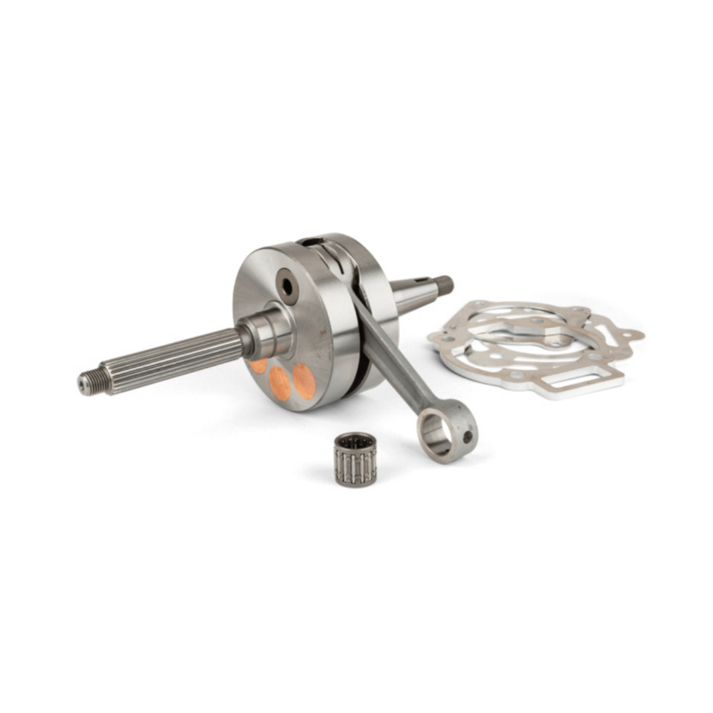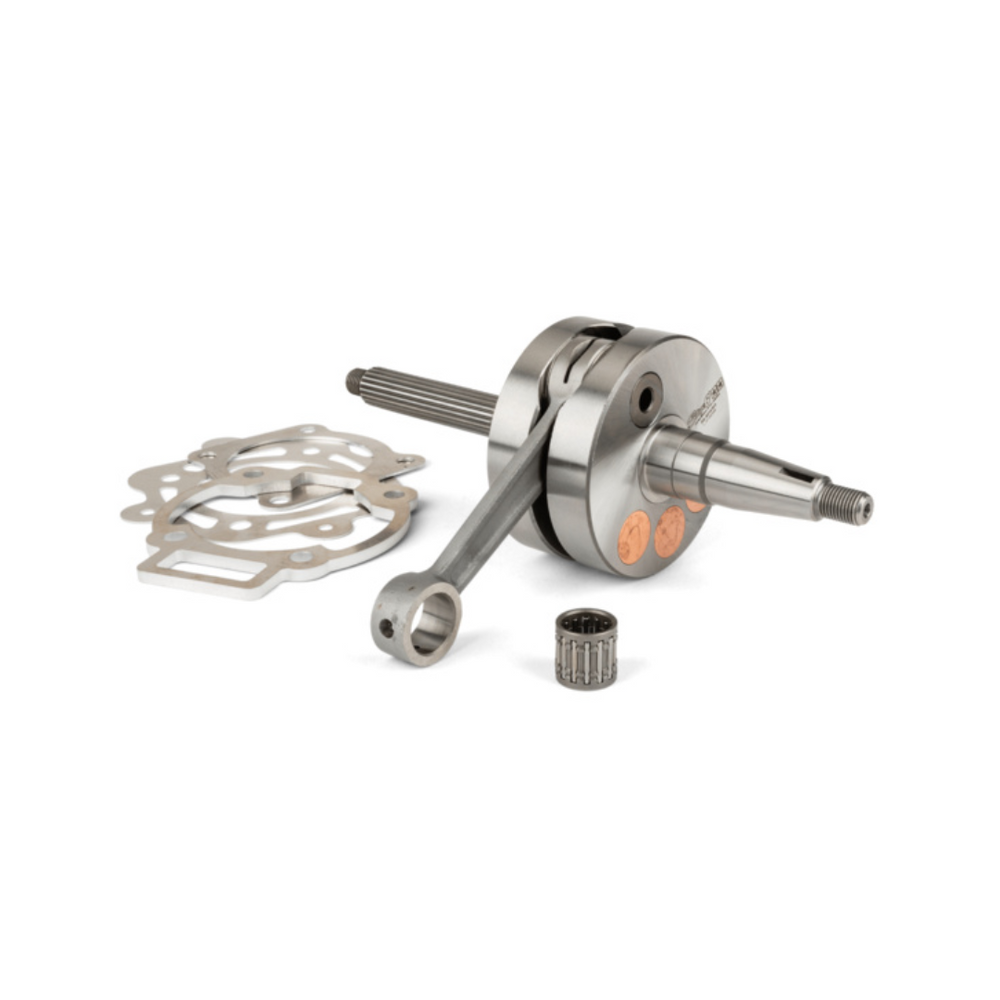 Deze krukas is voorzien van een gesmede drijfstang met zilversmeedafwerking voor optimale duurzaamheid. Door de slag te veranderen van 52 naar 55 mm wordt de cilinderinhoud vergroot, waardoor meer koppel en piekvermogen over het hele toerentalbereik worden geleverd. De bijgeleverde afstandsstukken voor de cilinderkop zorgen voor een eenvoudige installatie en aanpassing van de boringlengte en poorttiming.
