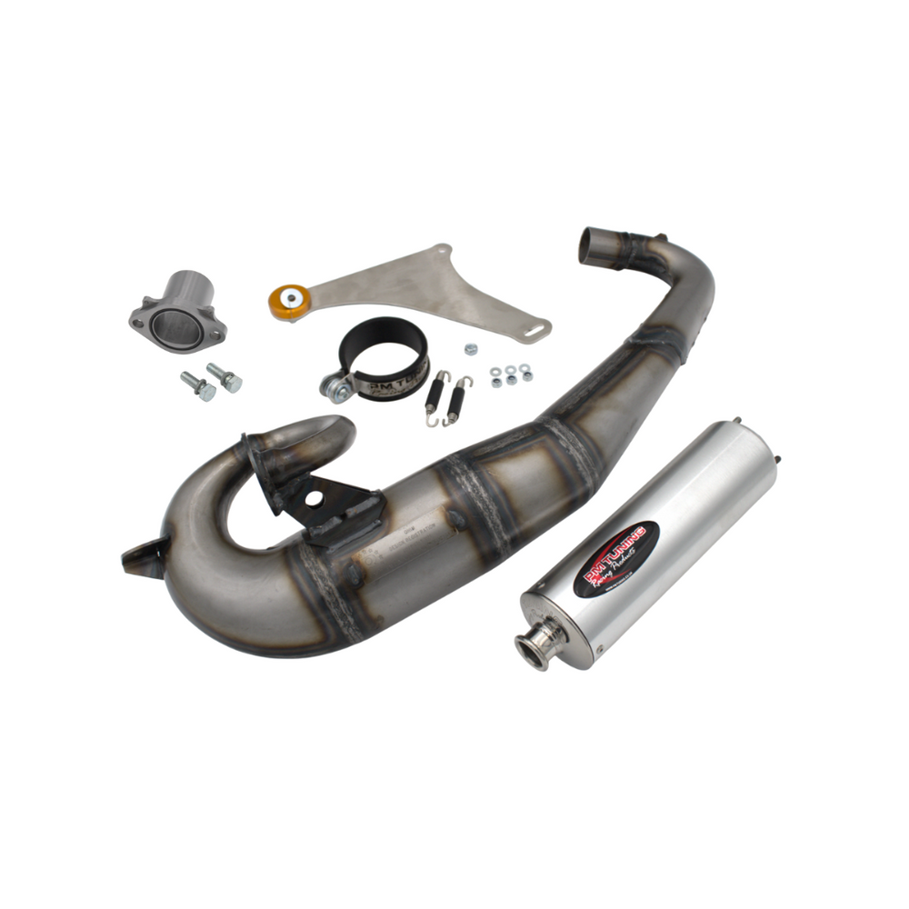 Til jouw Gilera Runner of Italjet Dragster 125cc-180cc naar een hoger niveau met de handgemaakte PM59 Performance Uitlaat van PM Tuning Racing Products. Deze hoogwaardige expansiekamer, inclusief een stijlvolle demper naar keuze en complete montageset, levert tot wel 3 pk extra vermogen ten opzichte van de standaard uitlaat – ideaal voor zowel standaard als getunede motorblokken.