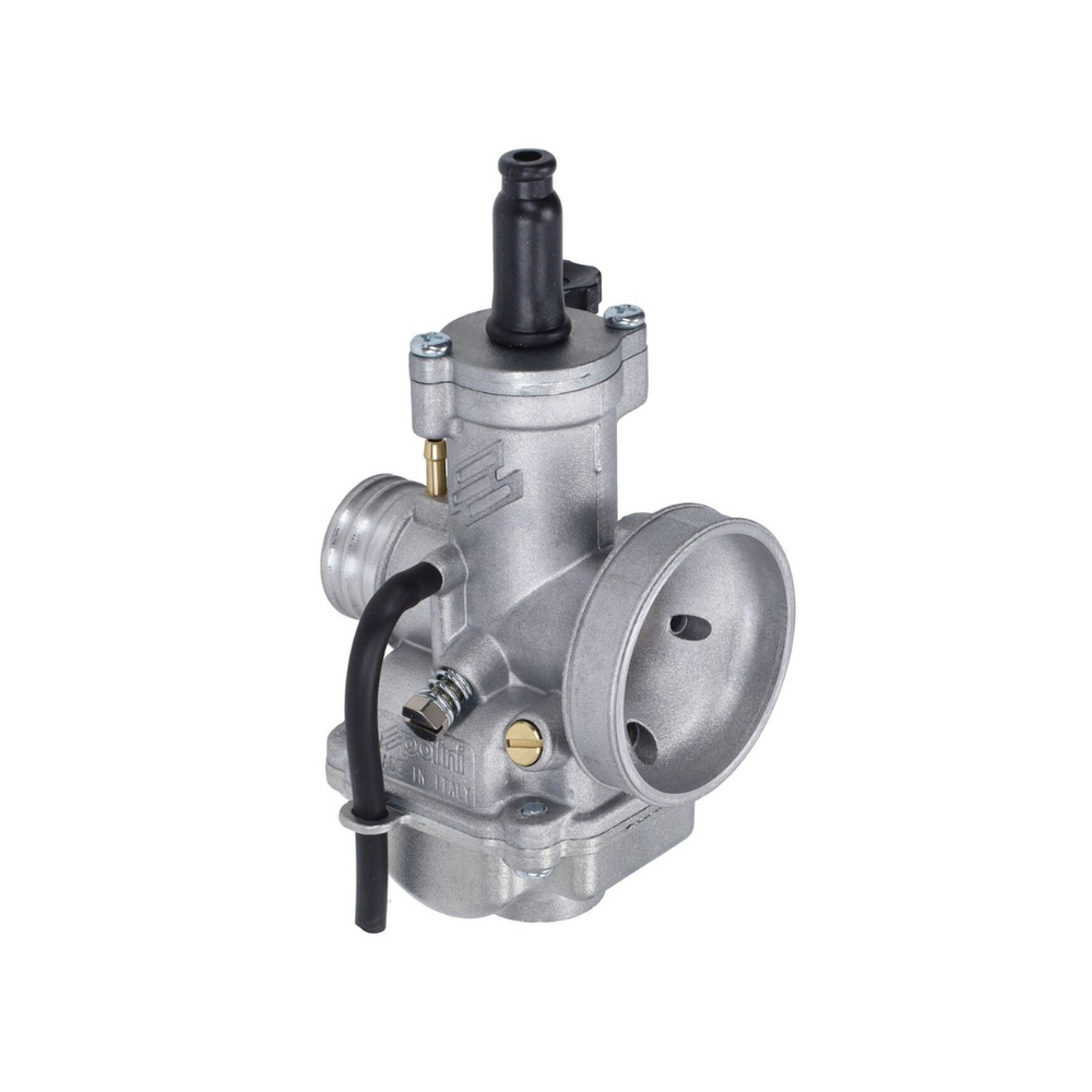 De Polini Carburateur 21mm Handchoke is een upgrade voor de standaard carburateur op veel scooters en bromfietsen. Deze carburateur heeft een diameter van 21mm en is ontworpen om de prestaties van de motor te verbeteren door een betere lucht-brandstofverhouding te leveren.