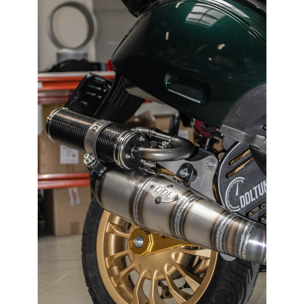 Ontdek de kracht van de DDL 360 uitlaat, ontworpen voor Piaggio en Gilera 125-180cc motoren. Wat maakt deze uitlaat zo speciaal? Het vernieuwde krul demper systeem, vergelijkbaar met de populaire PM59, optimaliseert de uitlaatgasstroom en produceert een krachtiger geluid. De standaard carbon demper geeft jouw motorfiets een sportieve uitstraling.