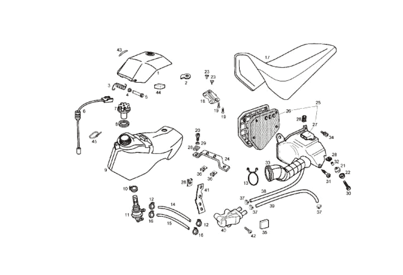 Derbi Senda SM 50 2T X-Treme E2 2006-2010 - Benzine, Luchtfilter & Zadel