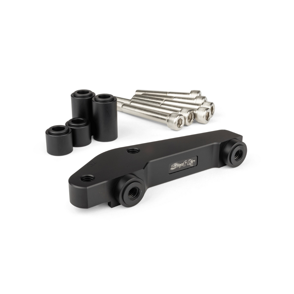 De Stage6 4-zuiger remklauwadapter voor Piaggio / Minarelli is een essentiële upgrade voor scooters zoals de Yamaha Aerox en Gilera Runner. Deze CNC-gefreesde aluminium adapter biedt uitstekende stabiliteit en past op verschillende remschijven (190mm, 220mm, 250mm, 280mm), zonder extra adapters. Ontworpen voor de originele vorkbevestiging, is het perfect voor racen of intensief gebruik. Voor optimale prestaties wordt aanbevolen om nieuwe remblokken voor de Stage6 R/T 4-zuiger remklauw aan te schaffen. Dankzij de nauwkeurige afmetingen en het hoogwaardige ontwerp garandeert deze remklauwadapter verbeterde remkracht en controle.