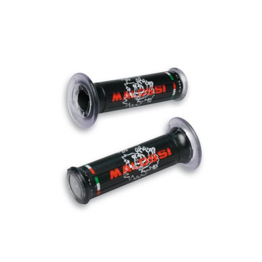 Deze unieke handvaten van Malossi geven jou scooter een veel betere look! Past op een Piaggio Zip en is gemakkelijk te monteren. De handvaten zijn passend voor elke scooter met de diameter van het stuur rechts (25mm) en links (22mm), geschikt voor vrijwel ieder type scooter zoals een Piaggio Zip, Gilera Runner, Piaggio Skipper en Vespa Sprint.