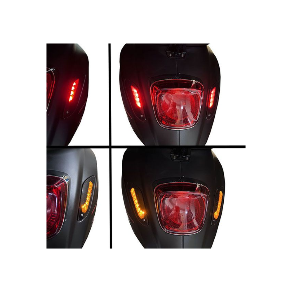 De LED Matrix knipperlichtset achter smoke is een stijlvolle upgrade voor jouw Vespa Sprint of Vespa Primavera. Deze achterlichten zijn voorzien van moderne LED-matrixverlichting, wat zorgt voor een helder, gelijkmatig en strak lichtbeeld. Dankzij de smoke (donkergetinte) afwerking krijgt je Vespa een sportieve en luxe uitstraling. De set is plug-and-play en eenvoudig te monteren op de originele aansluitingen.