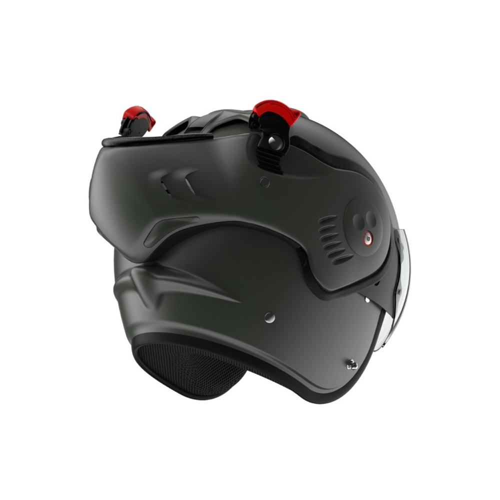 De Roof Boxer V8 Alpha is een ECE 22-06 gekeurde motorhelm met verbeterde aerodynamica, minder windruis en optimaal rijcomfort, zelfs op hoge snelheden.