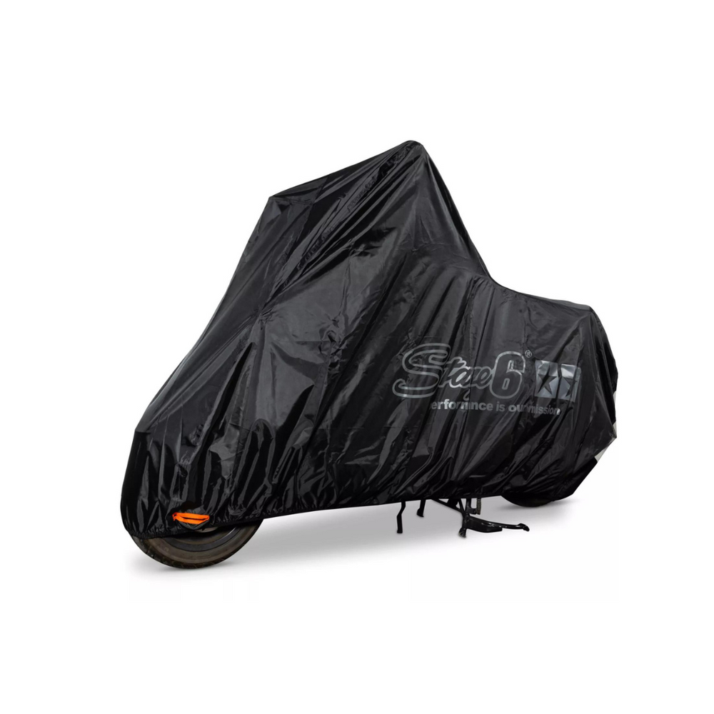 De Stage6 Scooterhoes Street biedt optimale bescherming voor je scooter, supermoto of maxi scooter. Deze one size hoes is speciaal ontworpen voor buiten en is waterdicht, UV-bestendig en bestand tegen zowel kou als hitte. Gemaakt van duurzaam 100% polyester met een PU-coating, garandeert deze hoes een lange levensduur. De afmetingen van 203 x 83 x 119 cm passen perfect om je voertuig en bieden handige functies zoals een kentekenplaathouder, een elastische voorkant en achterkant en een verstevigde opening voor een kettingslot. De stijlvolle donkergrijze kleur met stealth-print maakt deze hoes niet alleen functioneel, maar ook aantrekkelijk. Bescherm je scooter met de Stage6 Scooterhoes Street en verleng de levensduur van je voertuig!