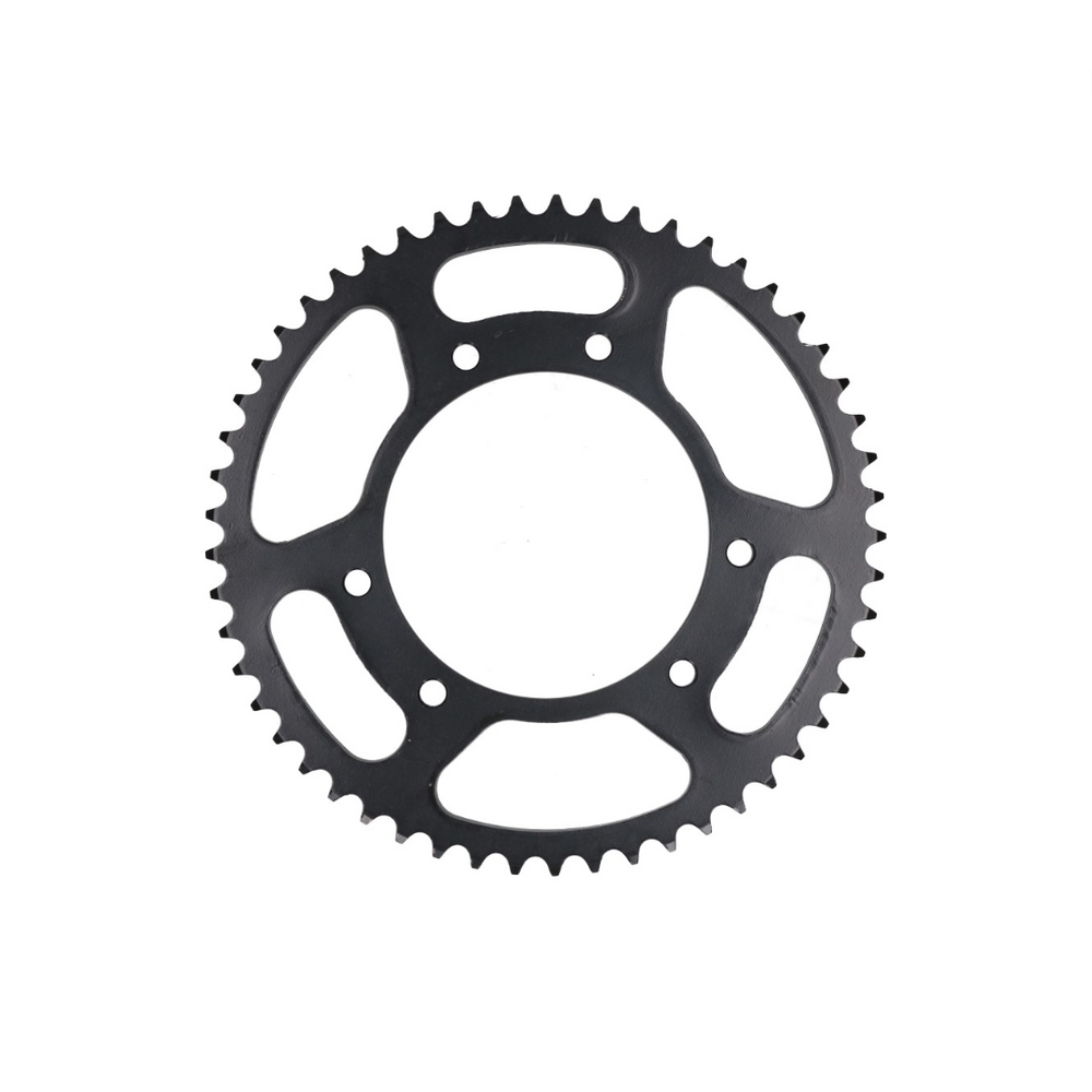 Dit achtertandwiel met 53 tanden is geschikt voor Derbi en diverse andere 50cc 2-takt bromfietsen met spaakvelgen. Het tandwiel is uitgevoerd voor een 420 kettingmaat en gemaakt van slijtvast staal, waardoor het perfect is voor zowel standaard als sportieve setups. Met 53 tanden krijg je een kortere overbrengingsverhouding, wat zorgt voor extra trekkracht — ideaal voor stadsgebruik of off-road rijden.