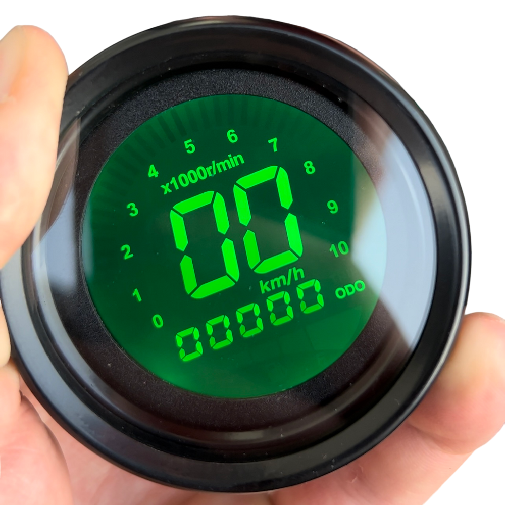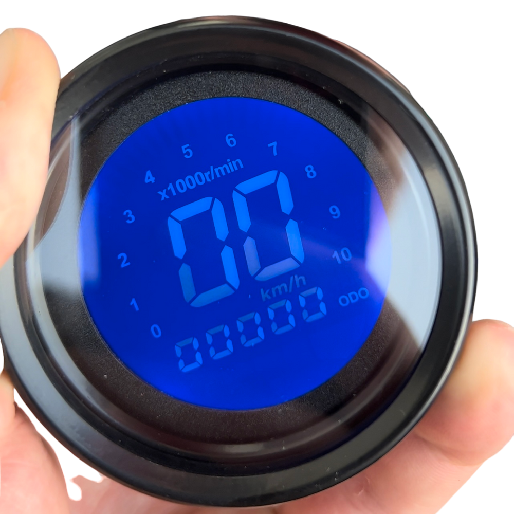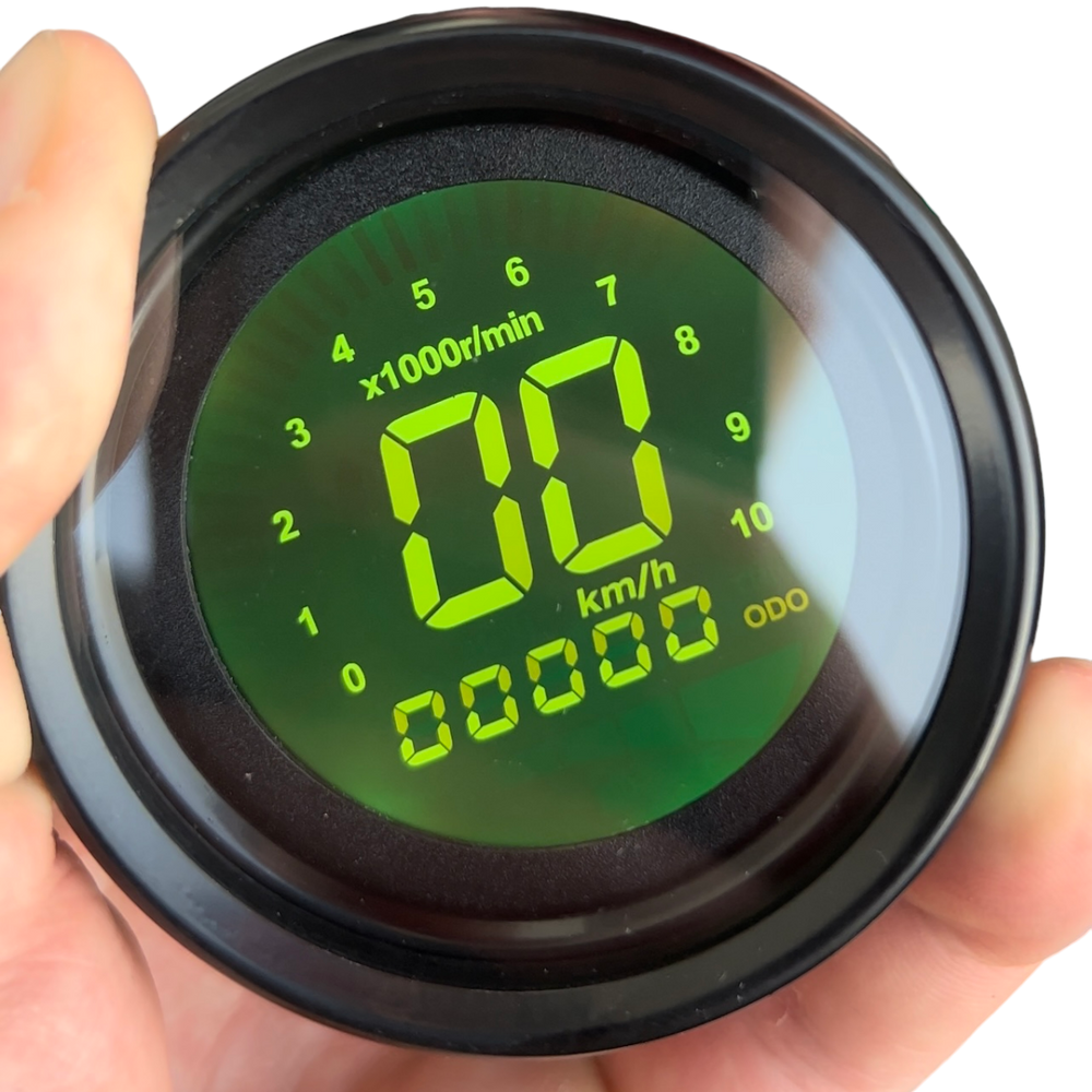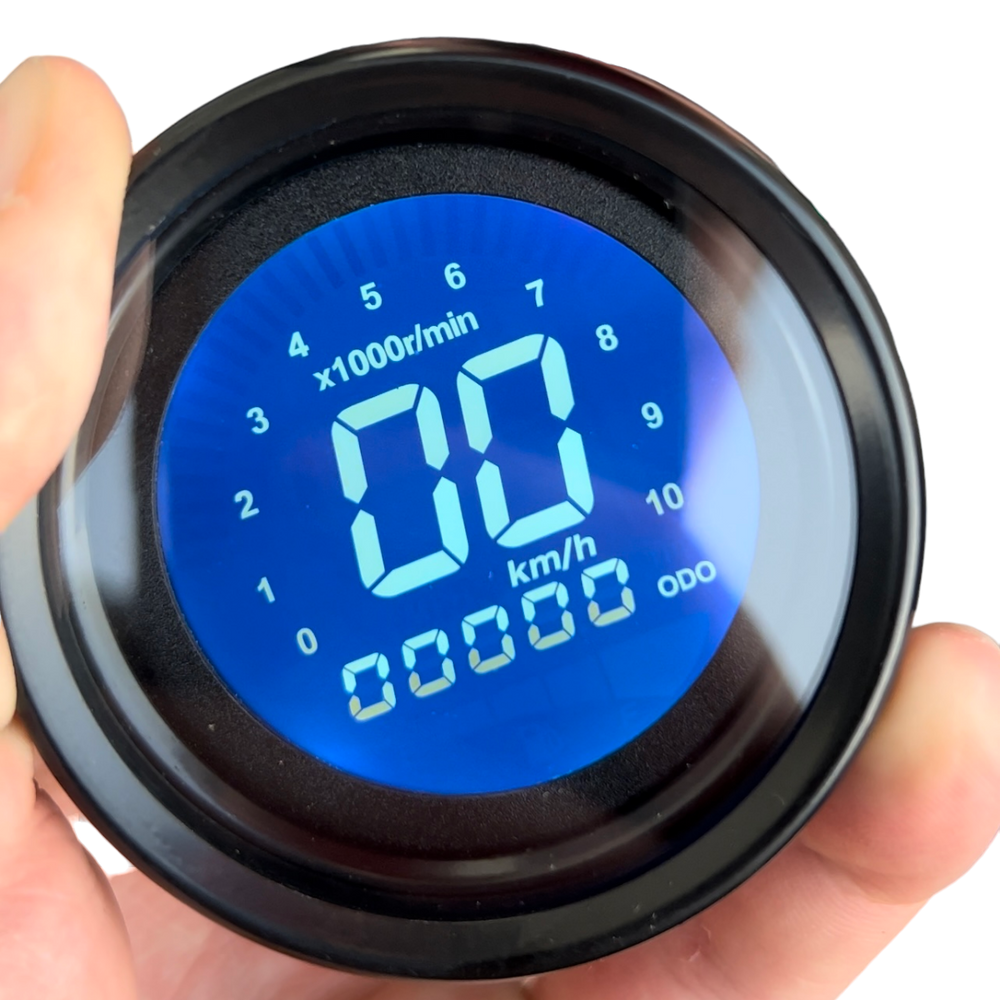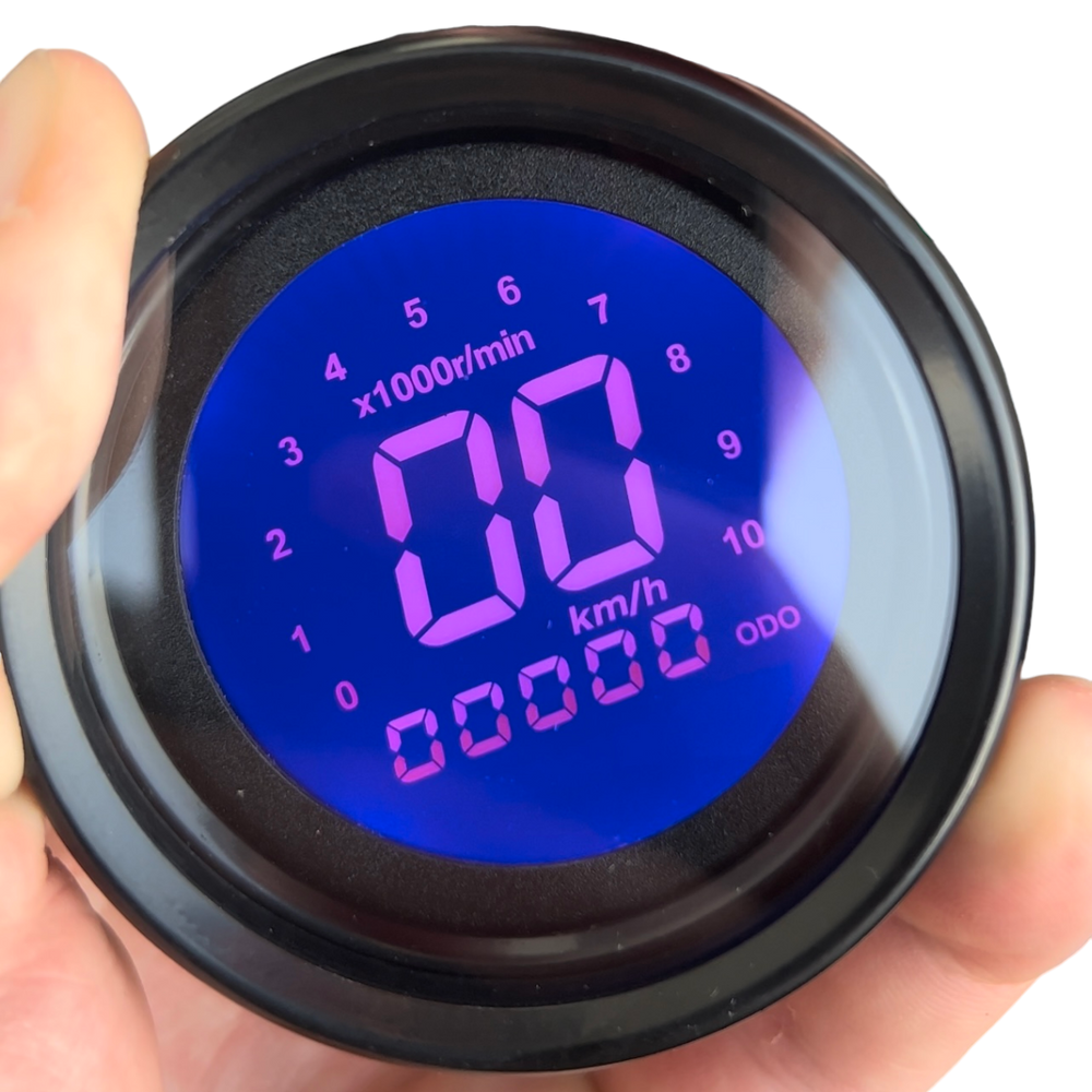 De digitale kilometerteller heeft een strak en mooi ontwerp waarmee de snelheid, toerenteller, kilometer stand en brandstof kan worden afgelezen. De kleur van het display is in zeven kleuren (aan te passen dmv knopje aan de achterzijde van deze teller), dit staat ook beschreven hoe je dit moet doen in de handleiding die je erbij krijgt.