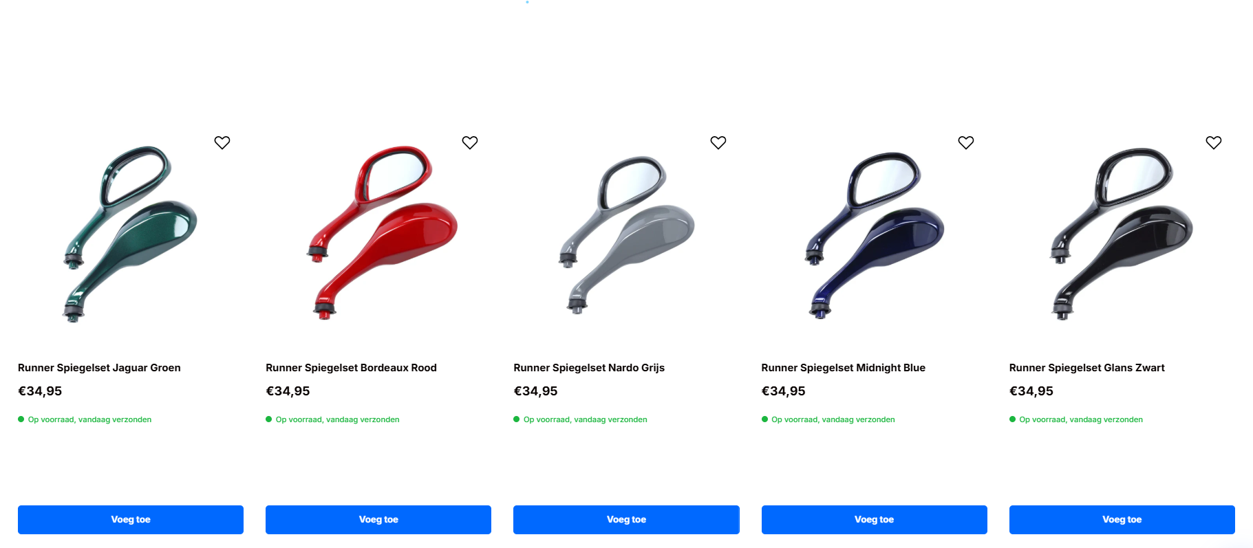Altijd al wat meer matchende kleuren willen hebben op je zip? Dat kan nu met de nieuwe gekleurde runner spiegels verkrijgbaar in 5+ kleuren o.a zwart, paars en rood!