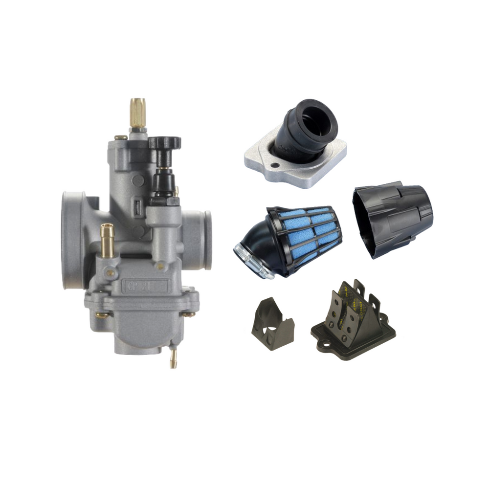 Das Package Deal Polini Vergaser 21MM Piaggio 2 Takt bietet ein komplettes Set für maximale Motorleistung. Dieses Paket enthält einen Polini 21-mm-Vergaser mit Handchoke, einen passenden Polini-Schwenkverteiler, eine VL11-Malossi-Membran und einen Leistungsfilter, der perfekt auf den Vergaser passt. Mit diesen hochwertigen Teilen können Sie das Luft-Kraftstoff-Verhältnis verbessern und die Leistung Ihres Piaggio 2-Takt-Motors steigern. Ideal für Tuner, die Qualität und Leistung zu einem wettbewerbsfähigen Preis suchen. Einfach zu montieren und für verschiedene Piaggio-Modelle geeignet.