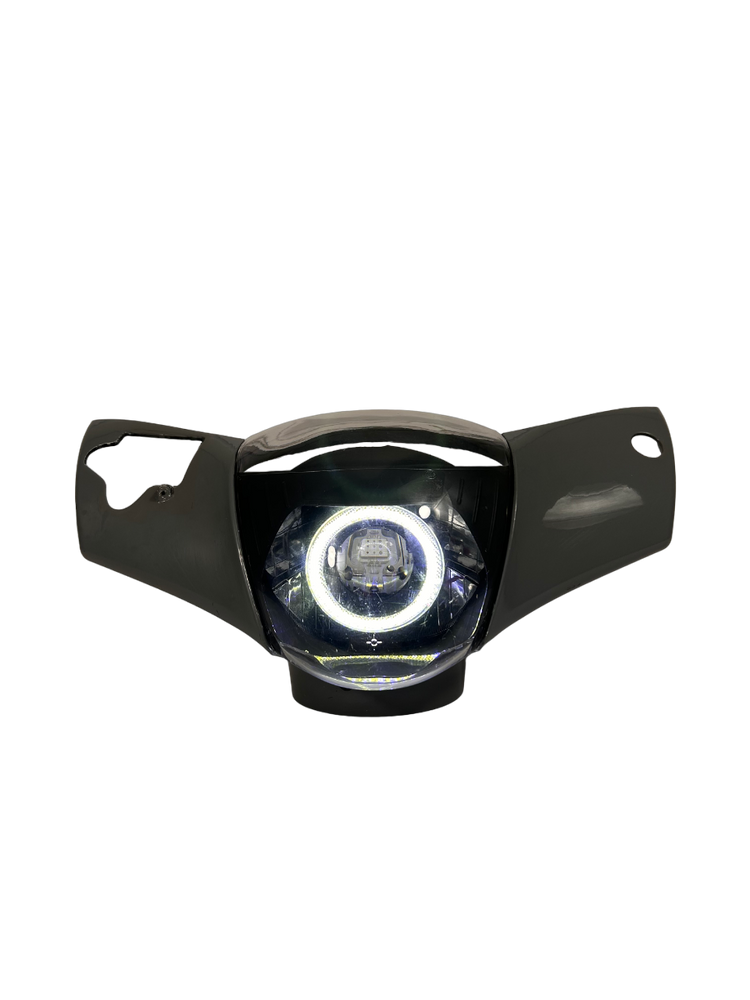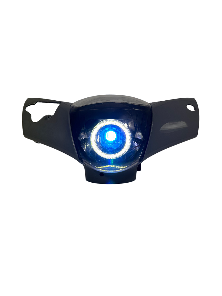 Das RGB Angel Eye Piaggio Zip bietet einen hellen und leistungsstarken Lichtstrahl, sodass Sie auch bei dunkelsten Bedingungen immer eine gute Sicht haben. Das Besondere an diesem Produkt ist, dass das Fernlicht (die RGB-Farben in der Mitte) auch über den Fernlichtschalter am Lenker Ihres Rollers perfekt funktioniert, sodass Sie unabhängig von den Straßenverhältnissen sicher in Richtung Straße fahren können. Umstände.