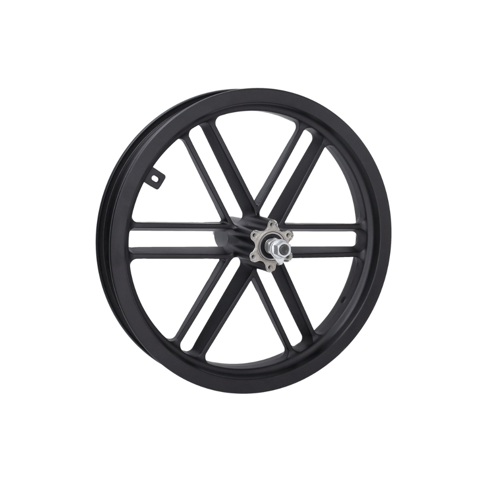 Das 16 Zoll schwarze Vorderrad ist für das V8 Mini Fatbike gedacht. Dieses Rad gewährleistet eine stabile und sichere Straßenlage und eignet sich ideal zum Austausch bei Beschädigung oder Verschleiß. Dank der richtigen Passform ist die Installation einfach.