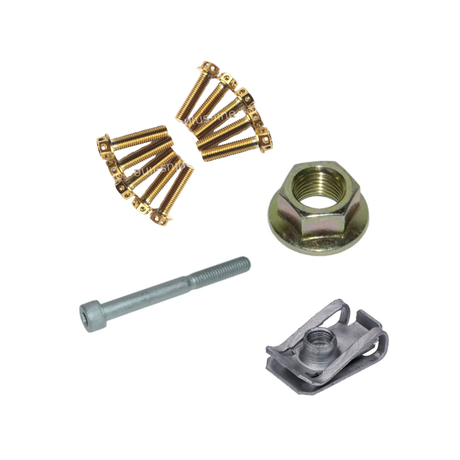 Boutensets, moeren, pakkingen en bevestigingsmaterialen.