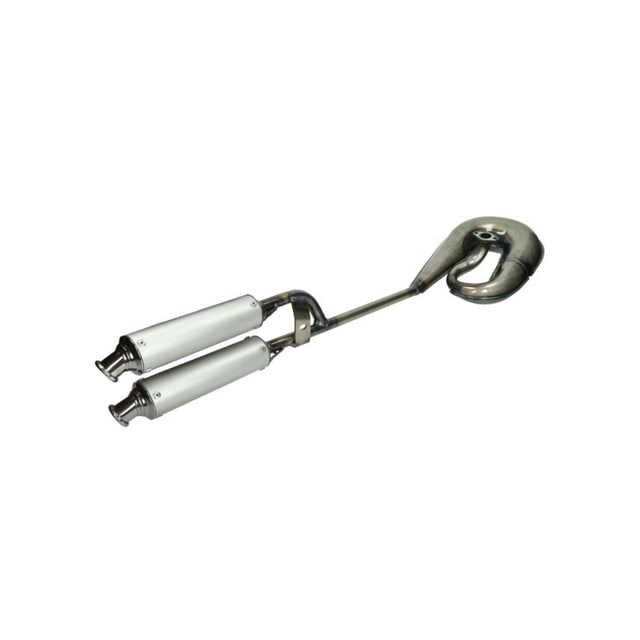 This Tecno circuit exhaust with double damper in white version is designed for the Puch Maxi and delivers excellent performance. The double damper design ensures an efficient exhaust gas flow, resulting in better acceleration and higher top speed. Made from high -quality materials for sustainability and a perfect fit. Ideal for upgrading your exhaust system for more power and a sporting look. Improve the performance and style of your Puch Maxi with this reliable Tecno circuit exhaust.
