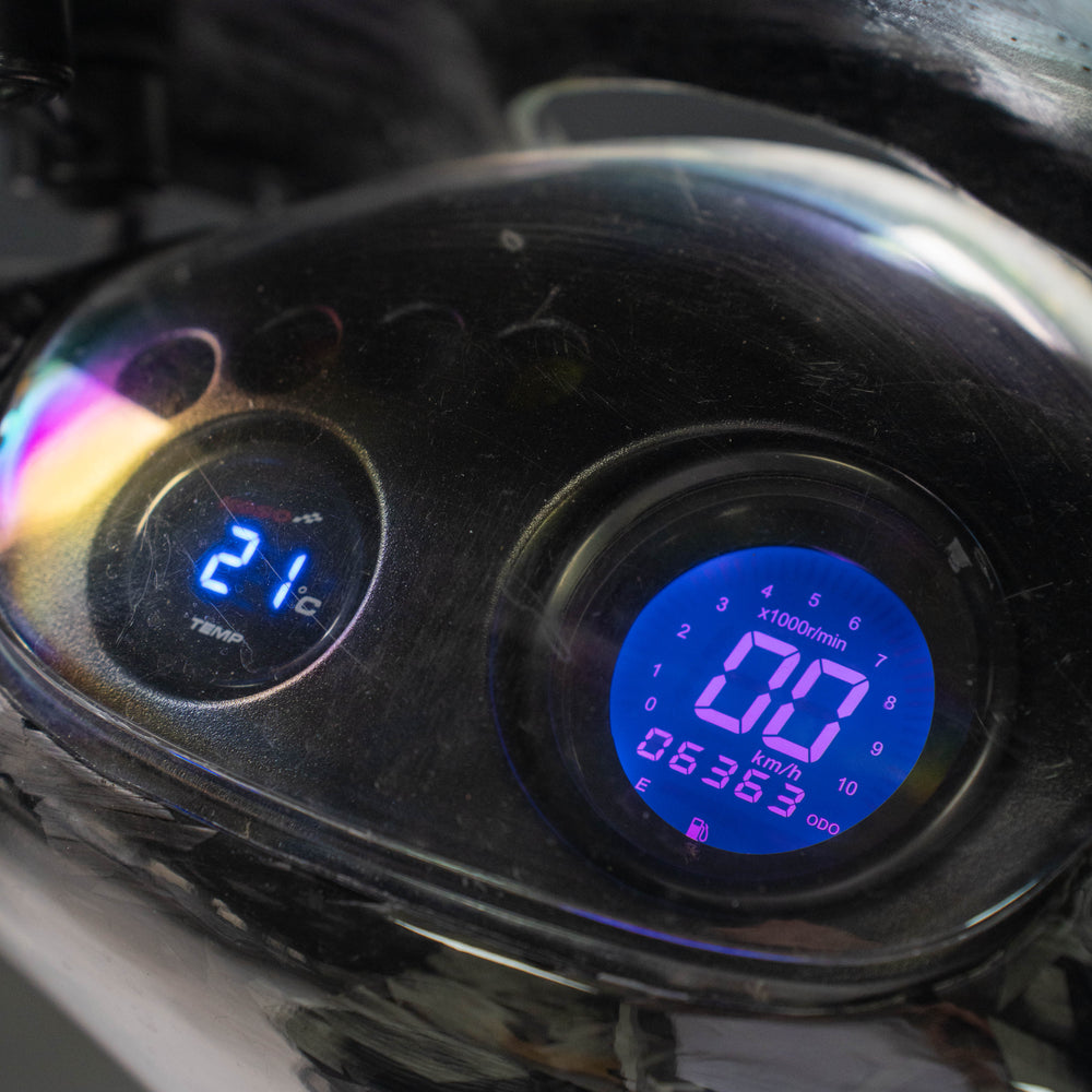 The temperature meter Koso 0-120 degrees blue is a compact and accurate meter that is ideal for monitoring the temperature in vehicles and engines. With a range of 0 to 120 ° C and an accuracy of 1 ° C, this meter is perfect for those who want to follow the engine temperature accurately. The blue display is clearly readable, and the meter flashes when the temperature exceeds 120 ° C, which offers a handy warning. The i-Gear (Coin Style) meter works on 12V battery voltage and comes with a PT1/8 temperature sensor, English manual, and mounting materials. Suitable for universal use and easy to install.