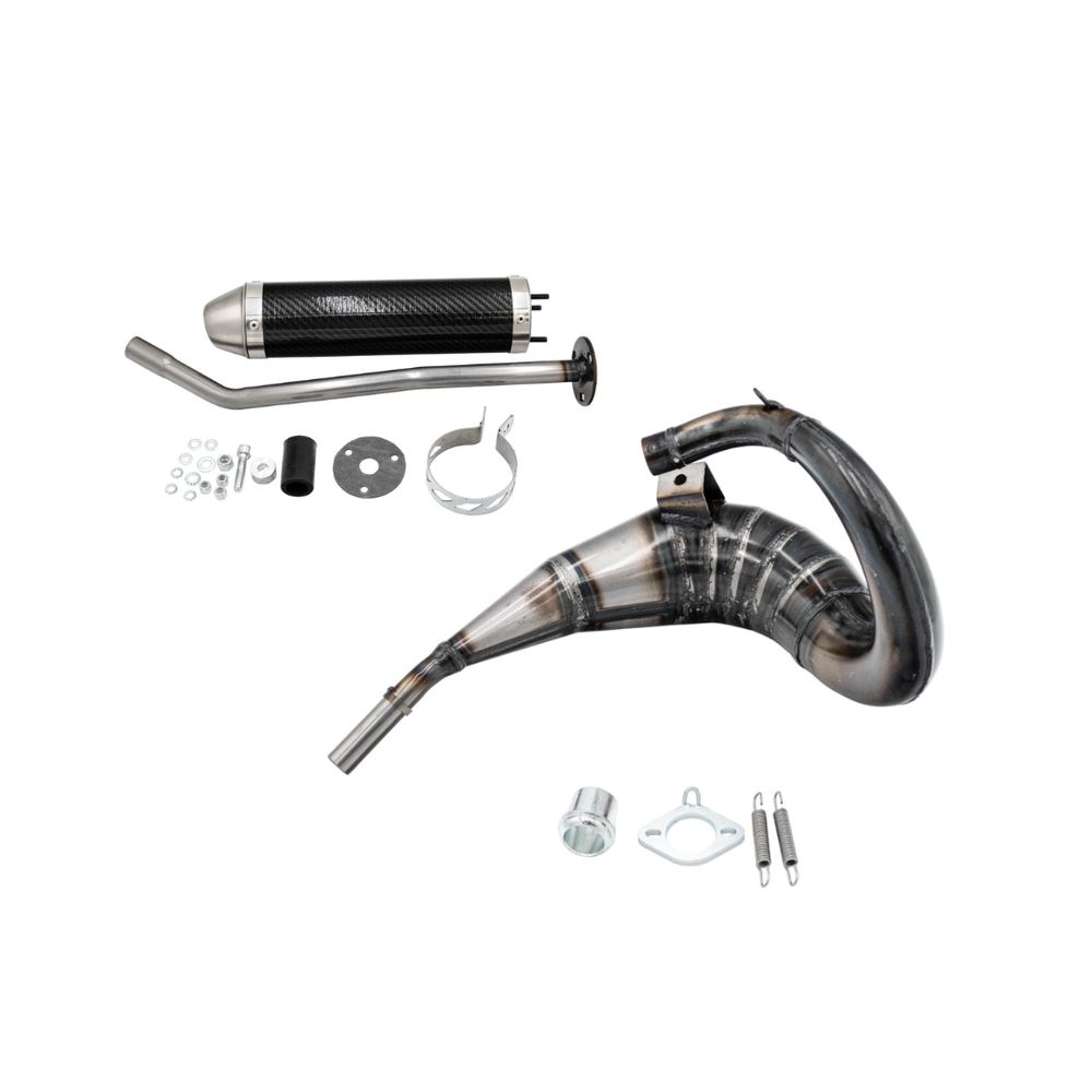 De Giannelli uitlaat Carbon is een hoogwaardige sportuitlaat voor de Aprilia RX en SX 50 met Derbi 2-takt motorblok. Deze uitlaat biedt een merkbare verbetering in trekkracht, gasrespons en topsnelheid, terwijl het sportieve geluid en de carbon einddemper zorgen voor een premium uitstraling. Dankzij het lichte gewicht en de perfecte pasvorm is deze uitlaat ideaal voor zowel dagelijks gebruik als sportieve tuning. Giannelli staat bekend om zijn Italiaanse topkwaliteit en precisie-afwerking.