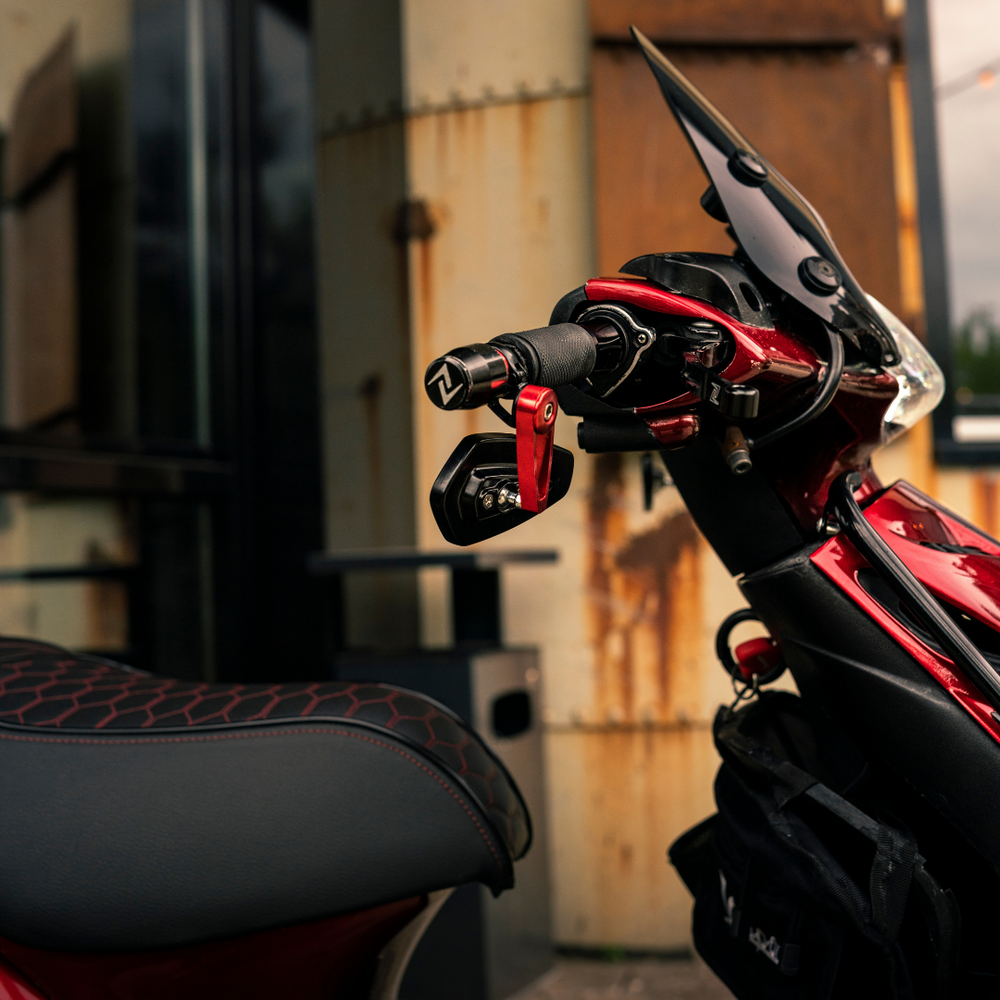 Give your scooter or motorcycle a sturdy and streamlined appearance with this universal bar end mirrors. These mirrors are mounted at the ends of the steering wheel, which not only ensures a sleek, modern appearance, but also an improved view of the road behind you. They fit perfectly with various scooters and engines with a steering diameter of 12/18mm, such as the Piaggio Zip, Vespa Sprint, Vespa Primavera and much more!