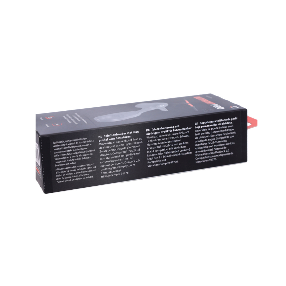 The Phone Holder Lampa Handlebar 22–35MM Fatbike Outfront Pro is intended for mounting on bicycle handlebars with a round diameter of 22 to 35 mm. This low profile holder can be reversibly mounted to the left or right of the head tube and provides a stable and low-vibration mounting for your phone. Thanks to the DuoLock 2.0 quick-release system, your device can be attached and removed quickly and safely.
