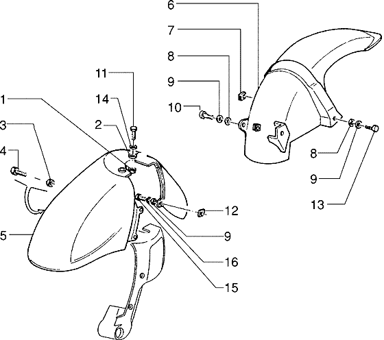 Piaggio Skipper - Voor- Achter Spatbord