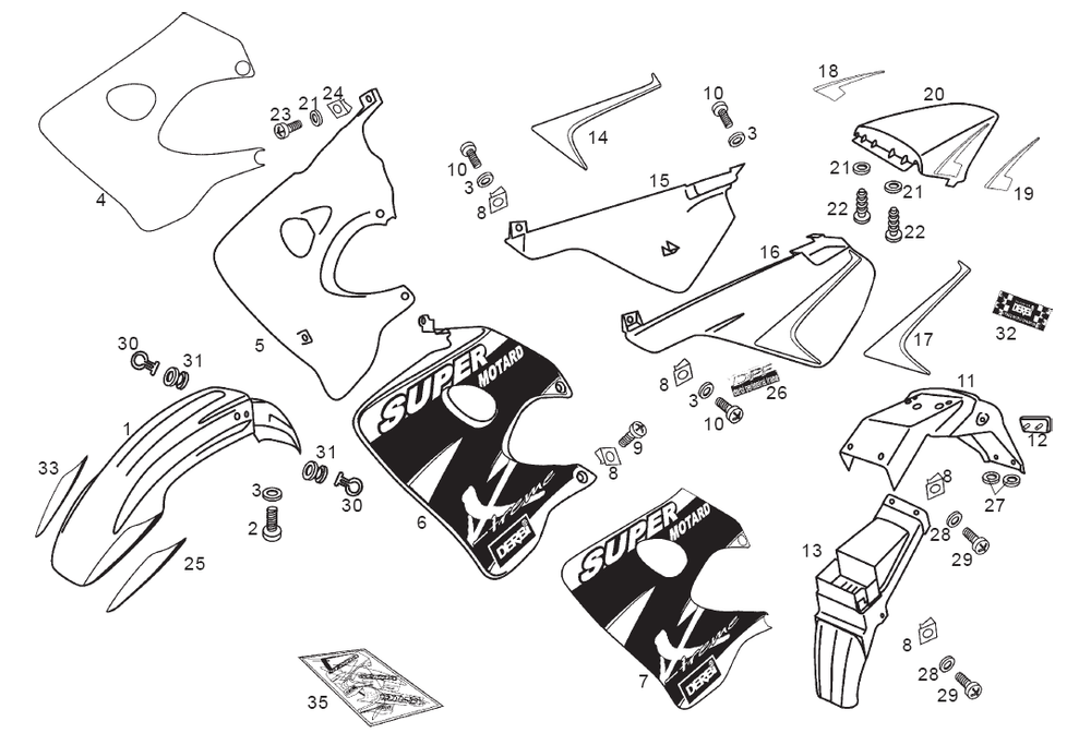 Derbi Senda SM 50 2T 2ª ED X-Treme E1 2003 - Spatbord, Zijscherm & Achter Beplating