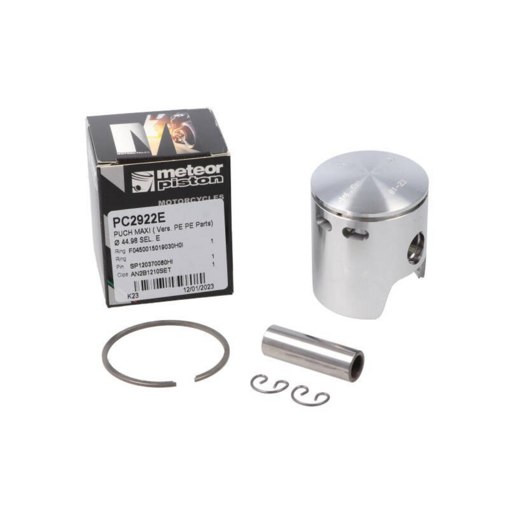 Ce piston Meteor d'un diamètre de 45mm, adapté à un cylindre 4 ports, est spécifiquement conçu pour le Puch Maxi. Il offre d'excellentes performances et durabilité, idéal pour remplacer ou mettre à niveau votre kit cylindre.