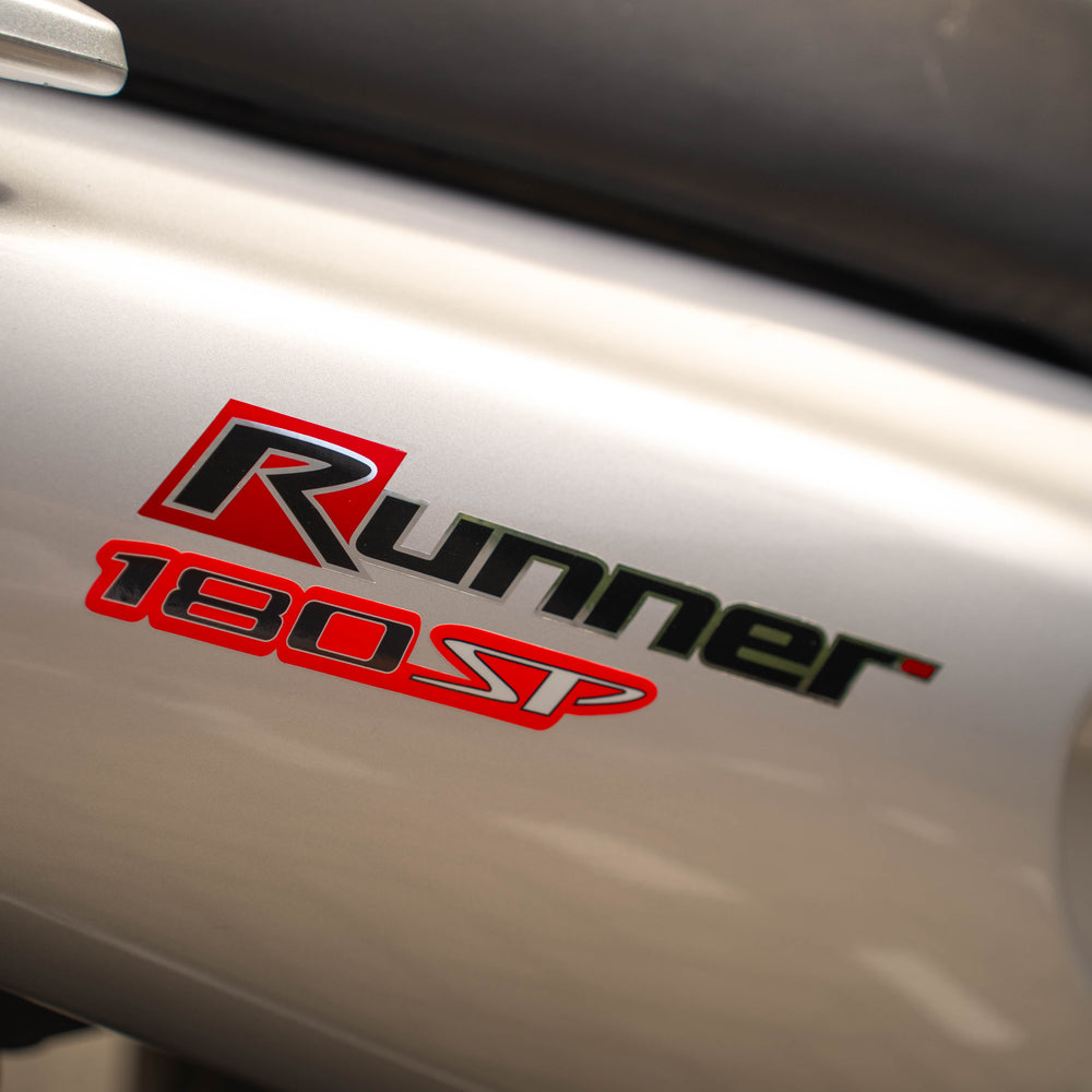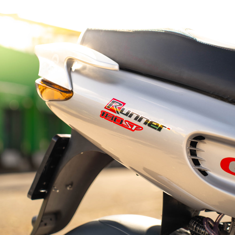 Stickers 180SP Gilera Runner SP Pro – zijkantstickers voor de Gilera Runner. Hoogwaardige reproductie en volledig 1:1 nagemaakt zoals ze geleverd werden, ideaal om je scooter in originele staat te herstellen of een frisse uitstraling te geven.