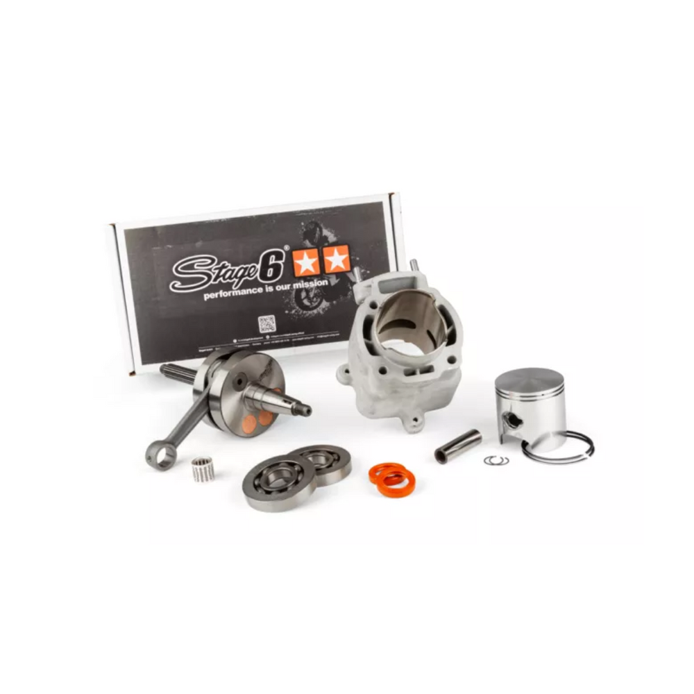 Esso PACCHETTO DEL MOTORE FASE6 GILERA RUNNER 180cc È l'aggiornamento perfetto per il tuo scooter. Questo pacchetto completo contiene un cilindro di alta qualità, albero a gomiti e cuscinetti per prestazioni migliorate e una durata più lunga. Ideale per il corridore di Gilera, aumenta la velocità e la potenza del tuo motore con questo potente pacchetto Stage6. Ordina ora e dai al tuo scooter la spinta che merita!