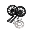 Aggiorna la tua zip Piaggio con questo set di ruote Special Shine Black per un look sportivo ed esclusivo. Questo set completo contiene tutto ciò di cui hai bisogno: un cerchio anteriore da 12 pollici e un bordo posteriore da 11 pollici in nero lucido, tra cui un disco freno di grandi dimensioni, adattatore ad artiglio del freno, gambe forcella estesa e materiale di montaggio richiesto.