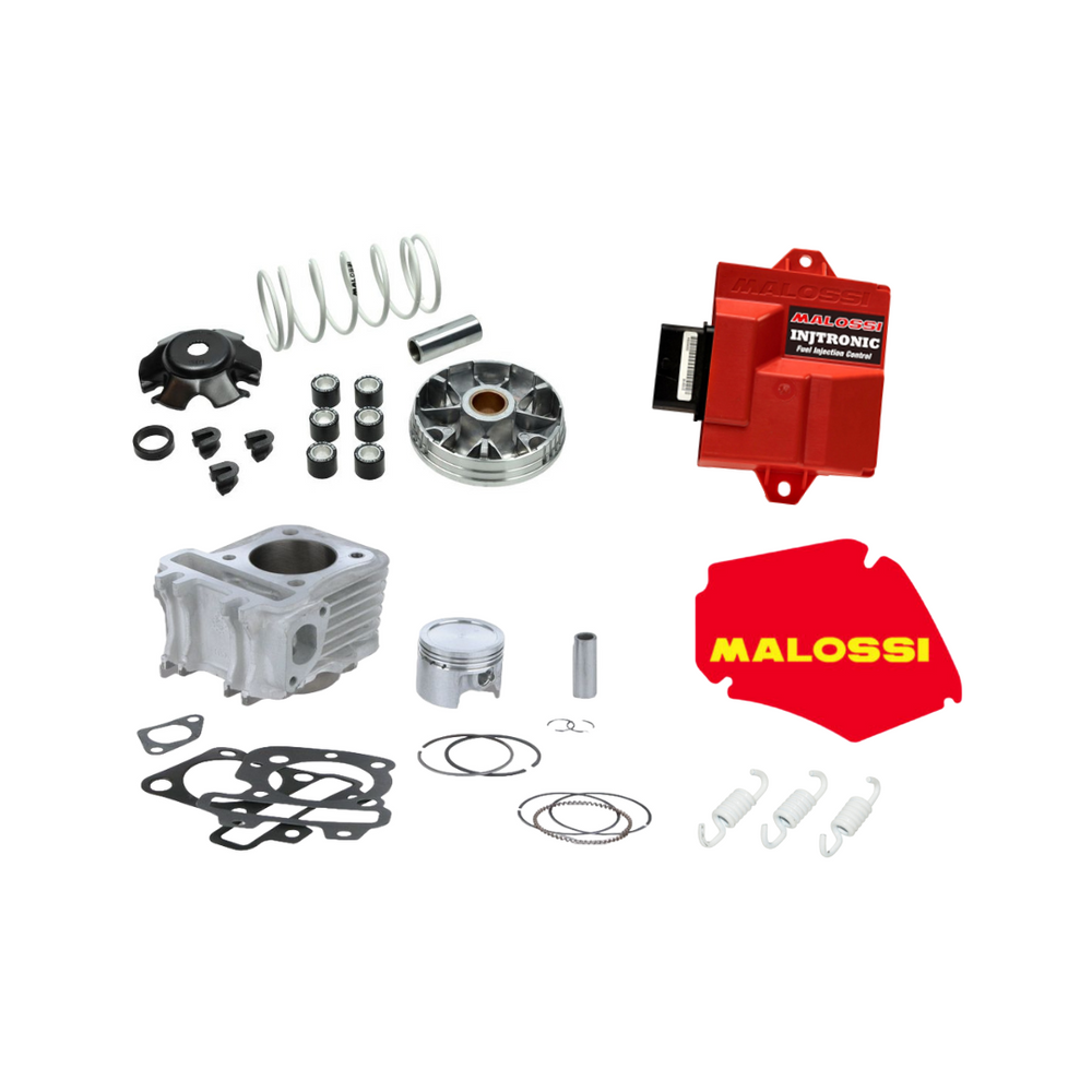 Aumenta le prestazioni del tuo Piaggio Zip Euro 5 (anno di costruzione 2021-2023) con questo kit boost da 80 cc completo. Questo kit contiene una ECU Malossi da 80 cc, un cilindro da 80cc Malossi, un multivar Malossi, 7,5 grammi di rulli, un elemento del filtro dell'aria Malossi e sorgenti migratorie bianche di Malossi. Con questa configurazione puoi raggiungere una velocità di 65 a 75 km/h, a seconda della risposta dello scooter.