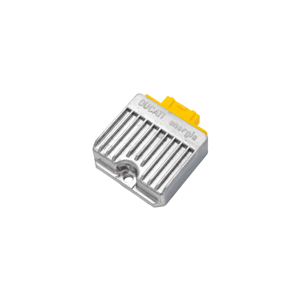 Il regolatore di tensione Ducati a 5 poli giallo per gli scooter Piaggio E2 fornisce una tensione elettrica stabile. Progettato specificamente per i modelli Piaggio E2, mantiene prestazioni affidabili e estende la vita del sistema elettrico.