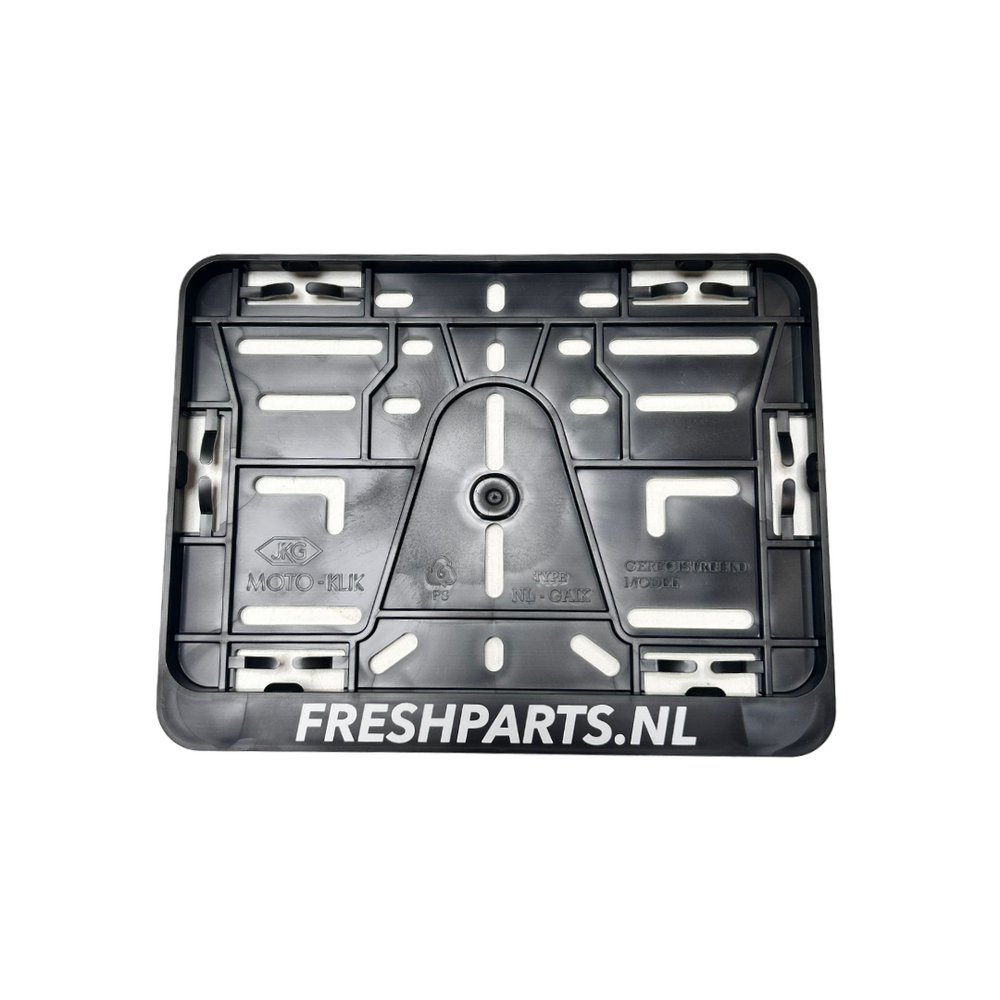 Il segno del motore Koverthouder Fresh Parts è un supporto per targhe di alta qualità appositamente progettato per le motociclette. Con il testo "FreshParts.nl" in fondo, questo supporto offre alla tua moto un aspetto elegante e sportivo. Realizzato in materiale durevole, offre un attacco robusto per la targa, aggiungendo un tocco unico e personale alla moto. Perfetto per i motociclisti che vogliono combinare funzionalità con un design sorprendente.