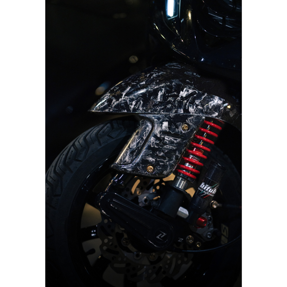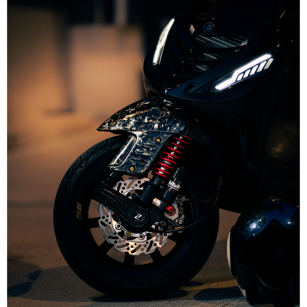 Il parafango anteriore Zip SP nel carbonio forgiato per una zip Piaggio è un prodotto davvero unico. Con la sua autentica finitura in carbonio forgiato, questo prodotto aggiunge un aspetto elegante alla tua zip Piaggio. Ogni parafango anteriore è realizzato a mano, il che significa che ogni pezzo è unico. Di conseguenza, piccoli punti sono inevitabili e può darsi che la vestibilità non sia perfetta (qualcosa di atelesle), ma ciò sottolinea la qualità tradizionale del prodotto.
