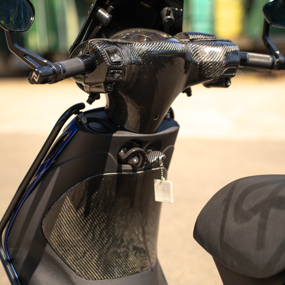 Dit product is een origineel onderdeel van Piaggio met daaroverheen een laag echt carbon zodat de originele pasvorm wordt behouden.