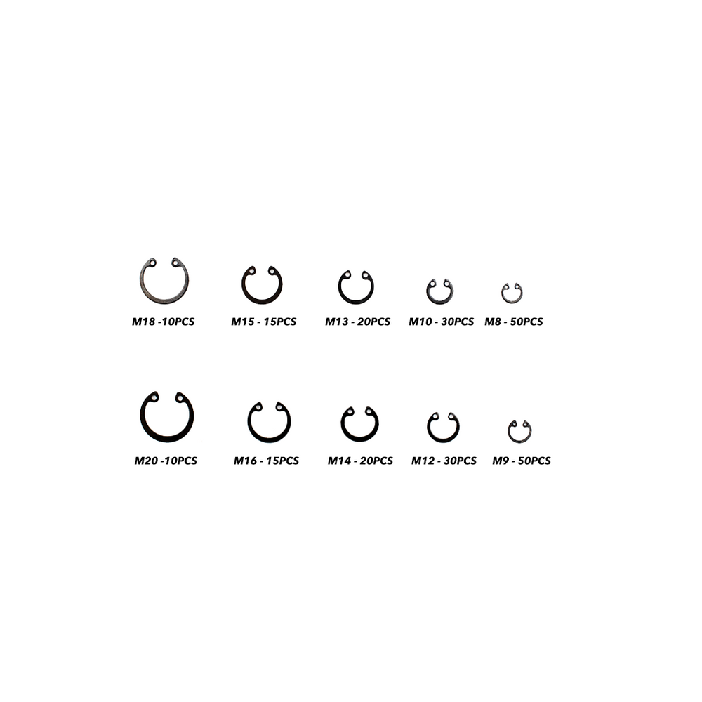 Complete borgring set met 250 stuks in diverse maten, ideaal voor montage en bevestiging van assen en boringen. Geschikt voor scooter-hobbyisten en professionals in techniek, auto- en machineonderhoud. Geleverd in overzichtelijke opbergdoos. Onmisbaar in elke werkplaats!