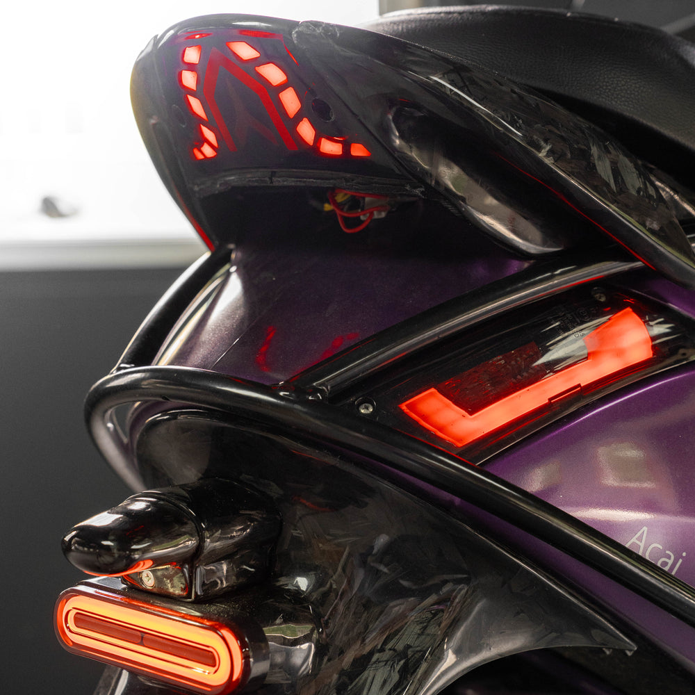 Dit Alpha LED achterlicht voor de Piaggio Zip is ontworpen door Alpha Styling en heeft een moderne uitstraling die je scooter een sportieve look geeft. Het achterlicht heeft een uniek effect waarbij de ledjes beginnen te bewegen wanneer je het contact aanzet, wat zorgt voor een opvallend en mooi visueel effect. Dit achterlicht is de perfecte aanvulling op de Alpha Styling knipperlichten voor een samenhangende look.