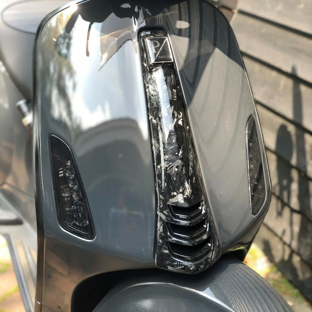 Upgrade je Vespa Sprint of Primavera met de Forged Carbon Claxonneus Facelift Model. Gemaakt van hoogwaardig forged carbon fiber, biedt deze claxonneus een moderne uitstraling en uitstekende duurzaamheid. Ontworpen voor een perfecte pasvorm met alle benodigde haakjes voor een veilige bevestiging. Let op: deze claxonneus wordt geleverd zonder vinnen in de grill.